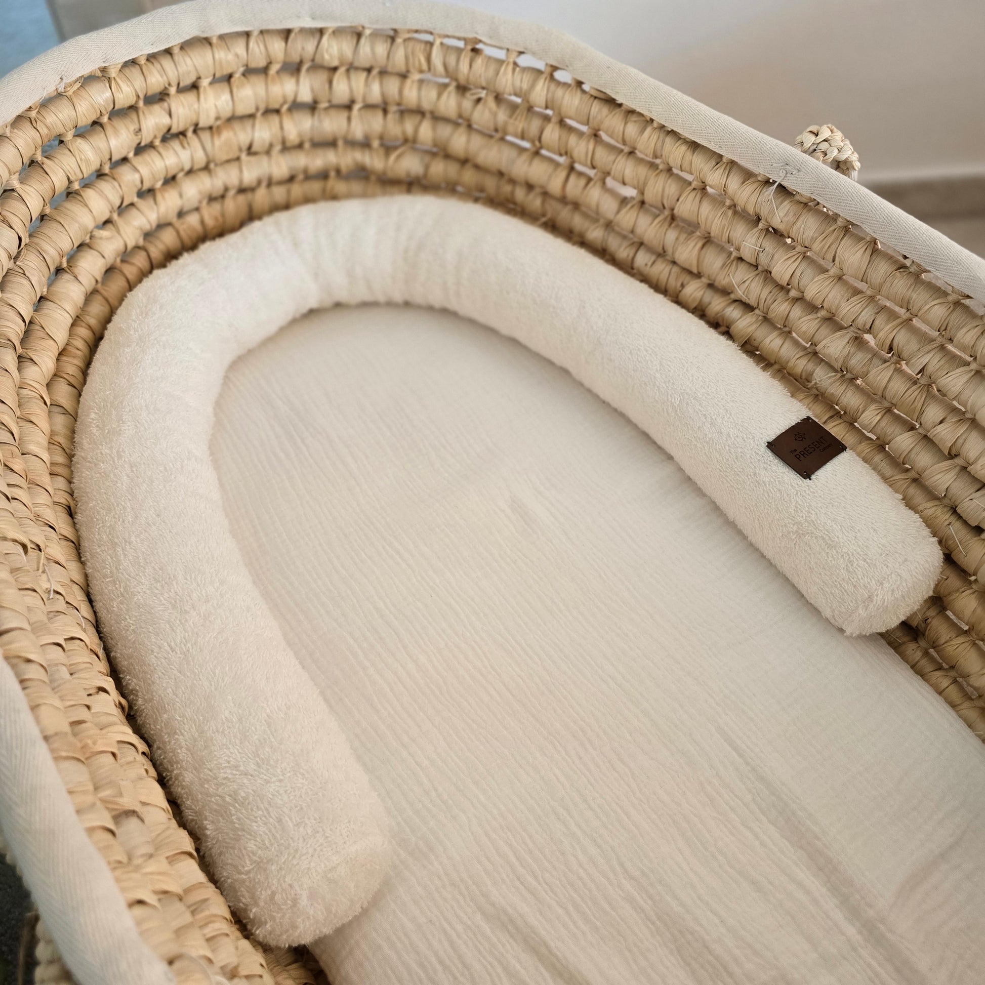 Unsere Bettschlange ist weich, kuschelig und ideal als Begrenzung im Kinderwagen oder im Stubenwagen.